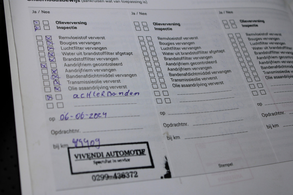 - Onderhoudsboekje aanwezig?